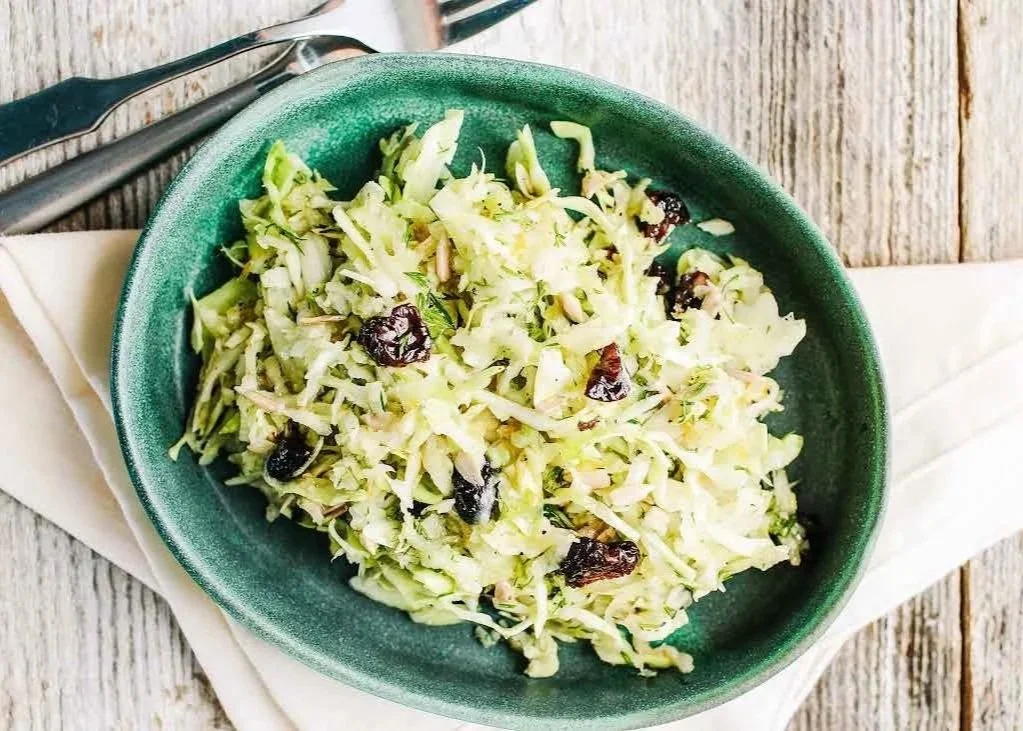 2. Combine the kohlrabi, cabbage, cherries, sunflower seeds, and dill in a large serving